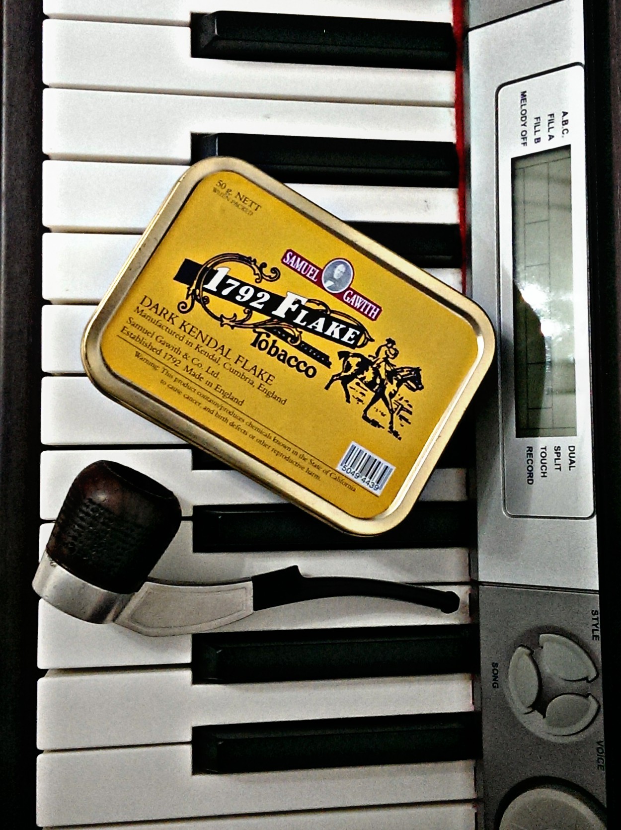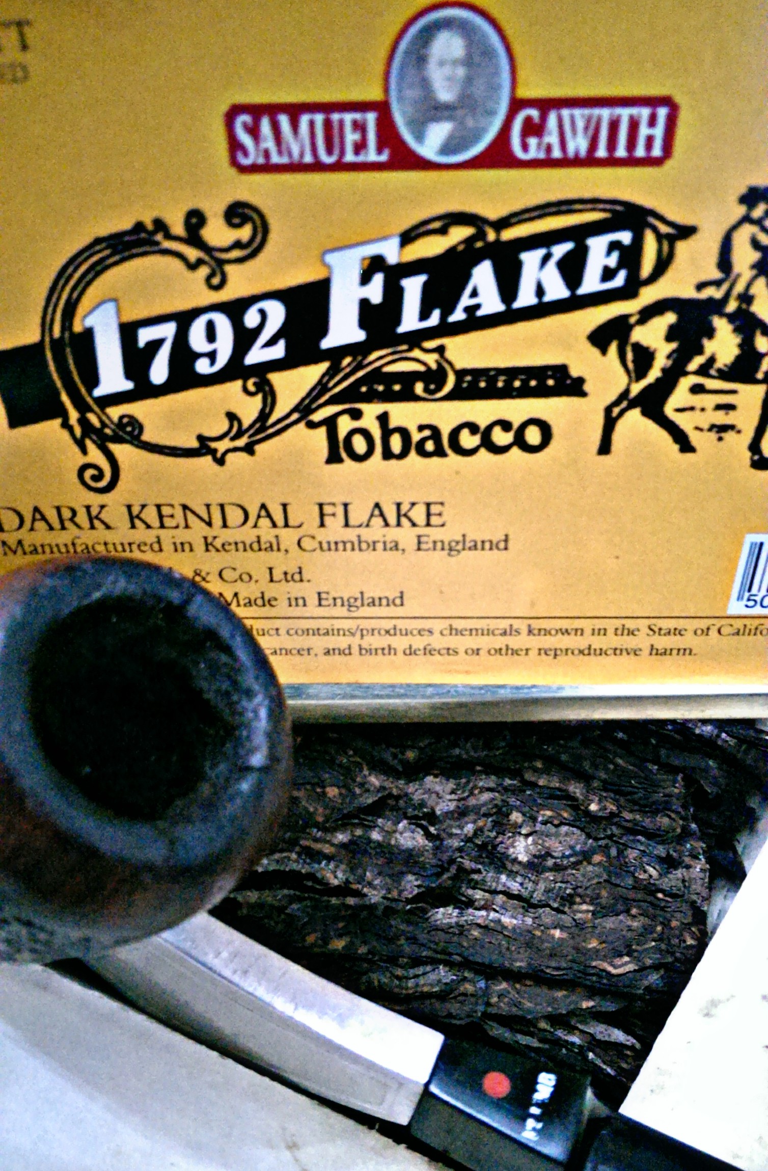 Penutup tin empat segi yang menjadi “trademark” SG dibuka dan bau campuran kismis bakar, biji vanilla kering, kayu manis dan sedikit hint daging salai menusuk kalbu. Disebalik kertas alas, flake-flake gelap yang tebal tersusun kemas dan rapi. Keseluruhan flake kelihatan agak gelap dan mungkin sedikit lembap, lalu seperti biasa saya akan mencarik kan sedikit demi sedikit, menjadikannya berbentuk “broken flake” sekarang. Preferensi personal saya sukakan teknik “fold-and-stuff” untuk flake yang agak kering, tetapi jika sedikit lembap, carikkan ia menjadi broken flake sememangnya jalan terbaik untuk sesi perpipaan segera.