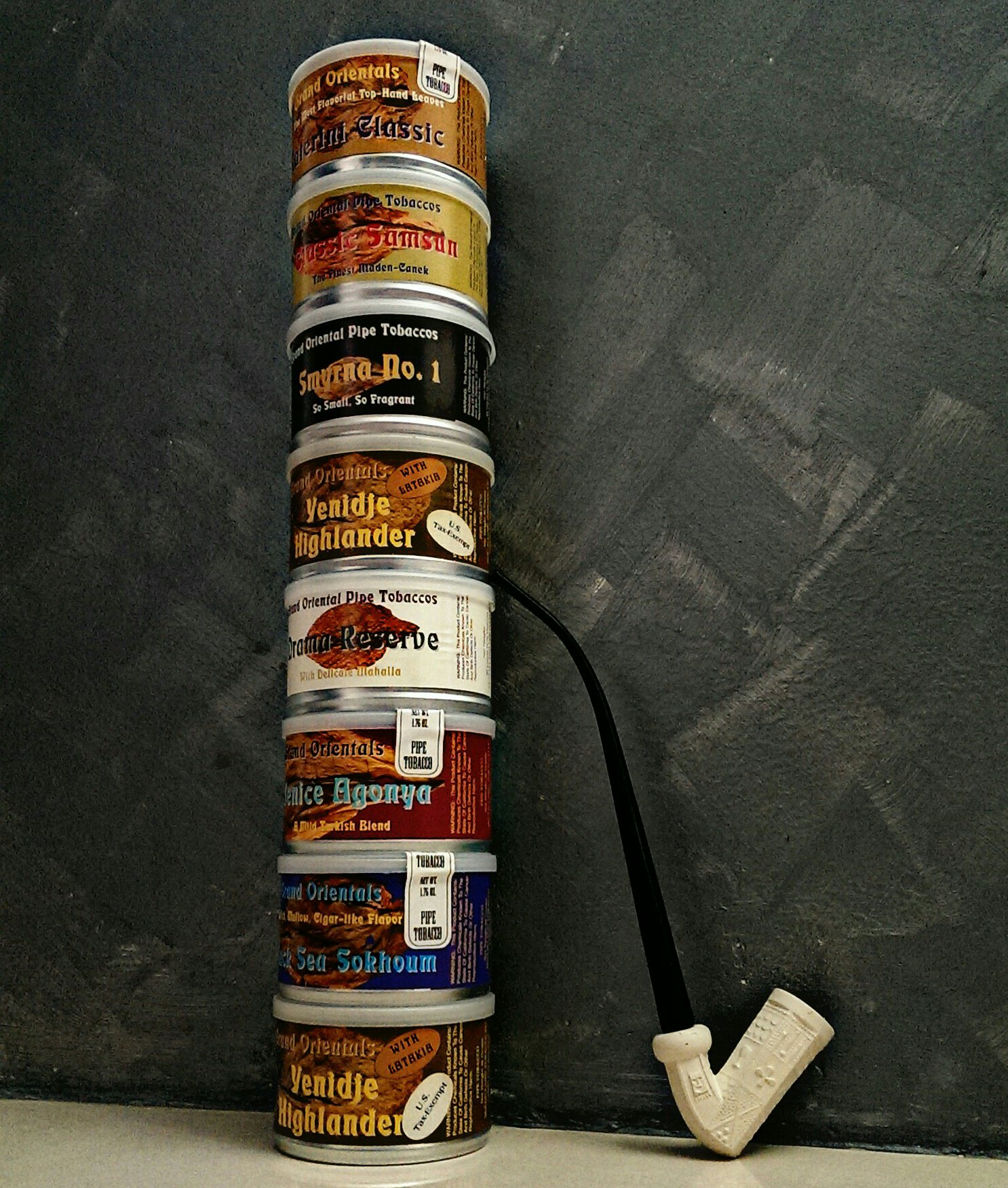 Siri hebat ini terdiri dari lapan jenis blend, dengan setiap satunya menampilkan satu jenis daun oriental yang berlainan. Yenidje, Smyrna, Drama, Katerini, Sokhoum, Yenice, Samsun adalah bintang-bintang siri ini, dibantu oleh beberapa lagi tambahan seperti Mahalla dan adunan virginia yang baik sebagai pentas untuk daunan ini mempersembahkan permainan citra ritma rasa mereka dengan cemerlang. Kita akan pergi kepada setiap satu jenis dari semasa ke semasa, tentunya sangat menarik untuk kita temui perbezaan rasa dari jenis-jenis yang akan diutarakan kelak.