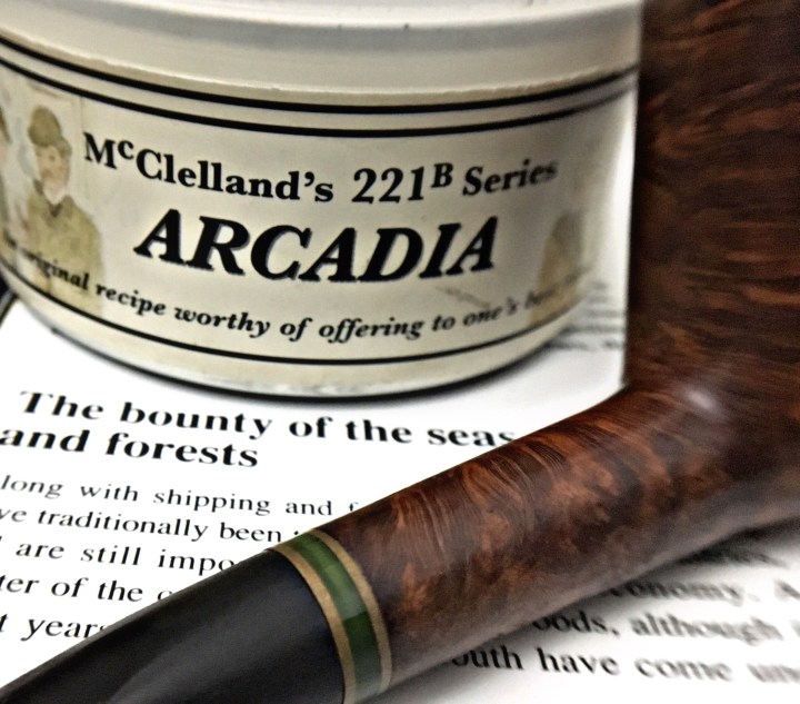 Sayugia itu, blend-blend oriental “purist” yang masih kita boleh dapat kan di pasaran adalah sangat terhad. Namun, satu peluang yang baik muncul apabila McClelland 221b siri “tribute” Sherlock Holmes muncul di pasaran pipa kita tidak lama dahulu. Siri ini mengambil pendekatan yang sangat serius dalam menzahirkan ramuan perpipaan watak-watak di dalam Sherlock Holmes dan Arcadia adalah blend oriental kegemaran Dr Watson yang dicipta khusus tanpa campuran latakia. Sememangnya saya sangat meminati siri ini kerana inilah tembakau blend oriental “as pure as it can be”. Cuma sayangnya approach mereka tidak mengenengahkan sesebuah daun oriental secara spesifik.