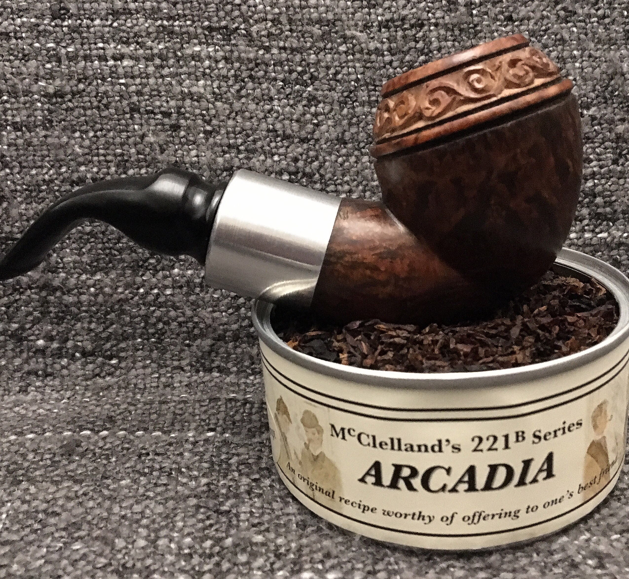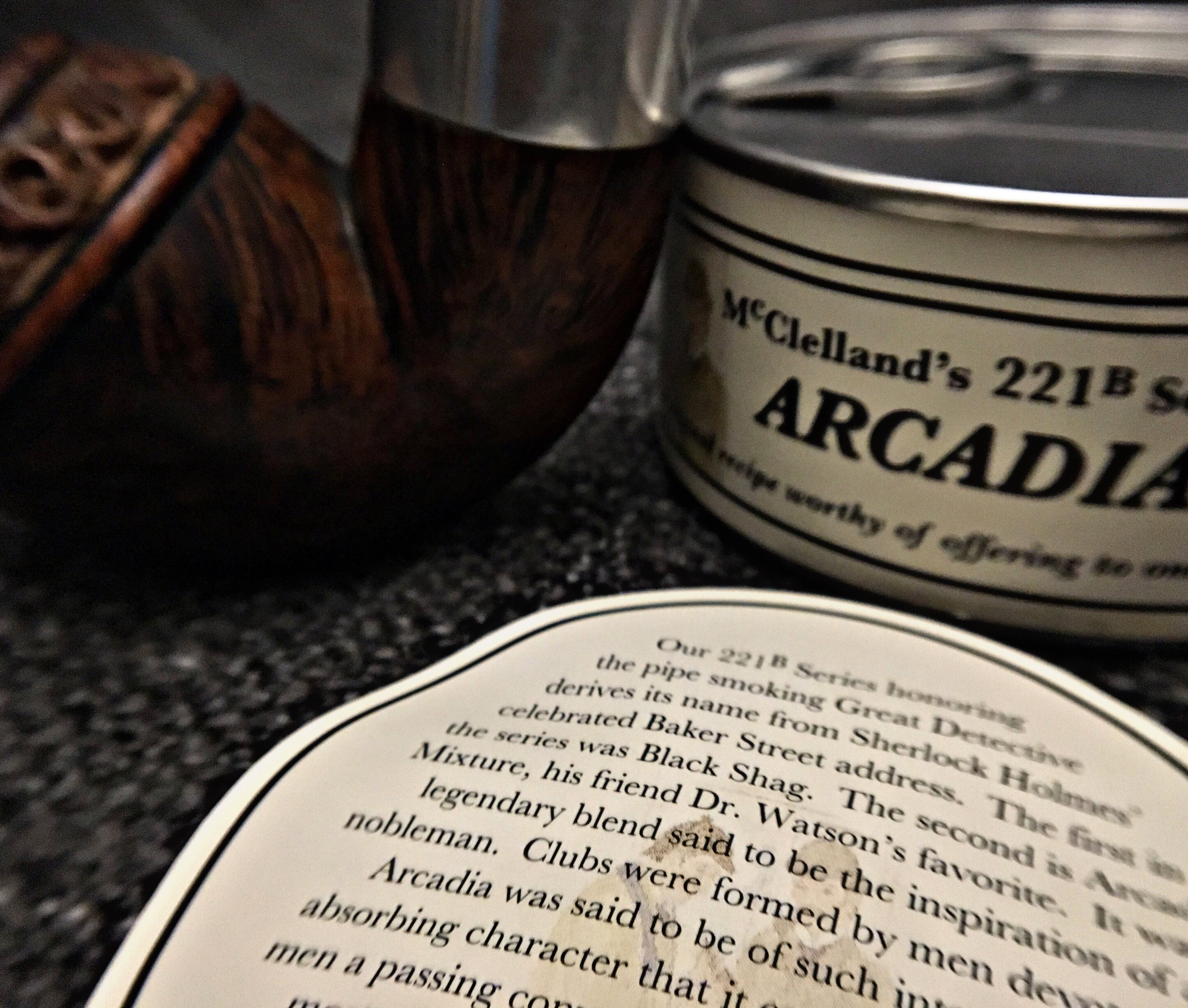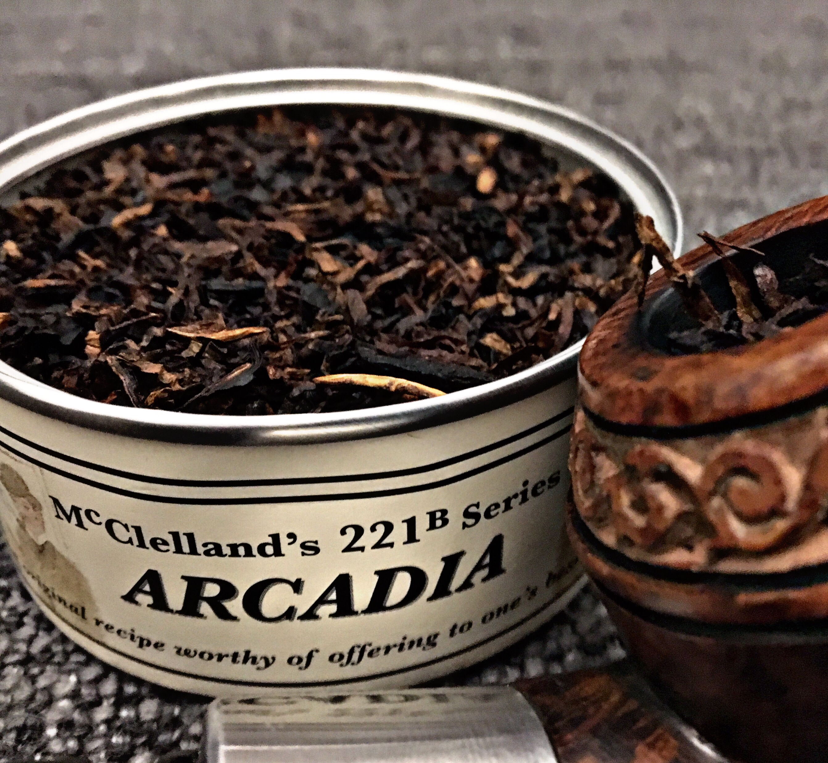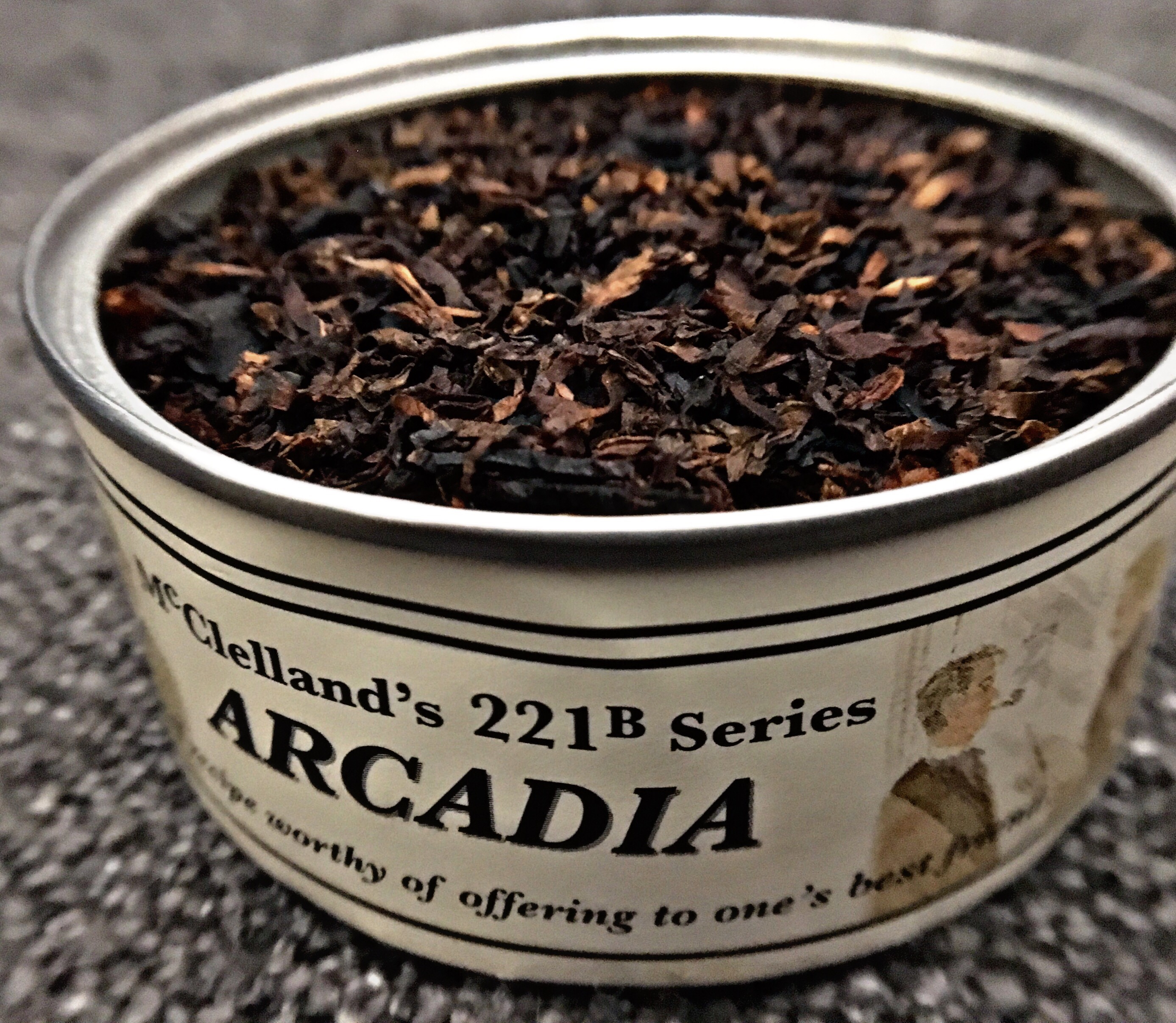 Mengikut fiksyen Sherlock Holmes, Arcadia adalah blend kegemaran Dr Watson, sekutu rapat detektif itu. Bukan sahaja di dalam karya Sherlock Holmes, Arcadia juga mendapat tempat di hati J.M. Barrie yang mengagung-agungkan blend tersebut di dalam My Lady Nicotine. Setelah nama blend ini mendapat tempat di dalam kedua-dua “literature” tersebut, tentunya ia adalah satu cabaran yang besar buat McClelland dalam menghasilkan sesuatu yang cuba untuk menyamai blend asal – lebih-lebih lagi dengan “hype” Arcadia yang dikatakan mampu membuatkan pemipa yang sangat kritikal dengan tembakau pun terdiam ketika menikmatinya. Hmm…